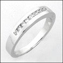 Exquisite wedding band with high polished shank and numerous round shaped high quality cubic zirconias in a channel setting.