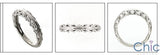 An elegant wedding band with engraved and contoured shank and high quality round cubic zirconias in prong setting.