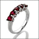 A stunning wedding band with a high polished solid shank and five high quality ruby color round cubic zirconias.