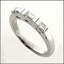 Cubic zirconia Single Row 3 Channel Baguettes Wedding Band 14k White Gold