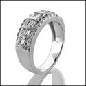 Elegant wedding band 6.5mm wide. It has a combination of diamond quality cubic zirconia round and baguette stones set in pave and channel.