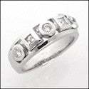 Wedding .75 Cubic Zirconia Round and Princess Bezel CZ Band 14K White Gold