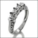 A lovely wedding band with princess cut AAA high quality cubic zirconias center stone set in prong setting, and pave set round stones on the sides of the band