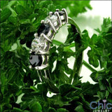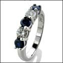 A special occasion ring with high polished solid shank with five round high quality cubic zirconias alternating with sapphire & diamond color stones in prong setting.