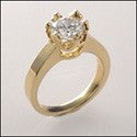 Solitaire Cubic Zirconia 1.25 Brilliant Crown Prongs Ring 14K Yellow Gold