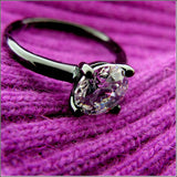 This cz solitaire ring is showcasing an AAA high quality, IGI certified round cubic zirconia stone in prong setting. The center stone is 1.25 carat round cubic zirconia.The low profile solitaire ring is made in a black Rhodium coated solid gold. The black rhodium adds a unique and modern twist to this simple yet elegant style. The shank is 2 mm wide. The cubic zirconia solitaire engagement ring is made in solid 14k gold. The "14k " stamp inscribed. PerfeCt buy for some one that likes unique and unusual pieces.