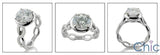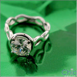 Unusual solitaire ring set with AAA high quality round stone in prong setting, the band has an eternity symbol design.