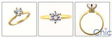 A simple yet elegant solitaire ring with a high polished solid gold shank and a round shaped diamond cubic zirconia in a high polished white gold 6 prong tiffany setting.