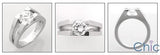 An elegant chic design ring with contoured high polished shank and a round shaped high quality cubic zirconia in bezel setting.
