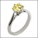 A simple yet stunning solitaire ring with a round canary colored high quality cubic zirconia in a six prong Tiffany style setting.