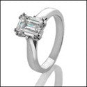 Solitaire 1 Ct Emerald Cut Cubic Zirconia Double Prong 14K White Gold Ring