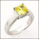 Tiffany style ring, with high polished solid shank and princess cut canary color high quality cubic zirconia in prong setting.