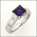Solitaire 1 Carat Princess Sapphire Tiffany Style Cubic Zirconia Ring 14k White Gold