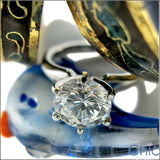 Elegant solitaire ring, topped with AAA high quality round stone in 6 prong tiffany style setting. Solid rounded shank.
