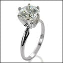 Cubic Zirconia Solitaire 2 Ct Round 6 Prong Tiffany 14K White Gold Ring