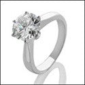 Cubic Zirconia Solitaire 2 Carat Round Tiffany 6 Prongs Ring 14k White Gold