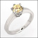 Cubic Zirconia Solitaire Ring .75 Canary Round Stone Crown Like Prongs 14K White Gold