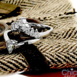 0.75 carat diamond quality cubic zirconia pear shape set in prong setting, unique shank.