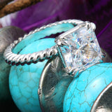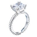 3 Carat Princess Cubic Zirconia Center Rope Twisted Shank 14K W Gold Solitaire Ring