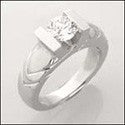 Solitaire Dome Engraved 1 Carat Round Channel Cubic Zirconia 14K White Gold Ring