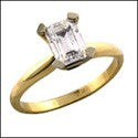 A simple yet elegant solitaire ring with a high polished solid gold shank and a emerald shaped diamond cubic zirconia in a high polished white gold prong setting.
