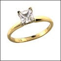 A simple yet elegant solitaire ring with a high polished solid gold shank and a princess shaped diamond cubic zirconia in a high polished white gold V prong setting.