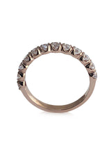 This beautiful rose gold wedding band has 12 round AAA highest quality, IGI certified round cubic zirconia stones. The cz stones are set in shared prong setting.The cz wedding band is made in 14k solid rose gold. "14K" stamp is inscribed. Rose gold is also known as Pink gold.This wedding band matches perfectly with engagement ring # 8627e