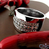 Wide band set with AAA high quality round stones in share prong and pave setting in 3 rows. The width of the bands is 12.00mmHeavy shank.