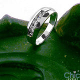 A unique mens ring with high polished solid shank with 7mm wide band, with high quality princess cut cubic zirconia diamond color stones set in channel setting.