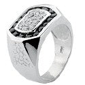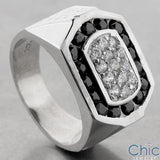 Eye catching men’s ring set with AAA high quality clear and black color round stones in channel setting. 15mm wide solid band.