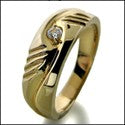 Mens Single Small Round Stone Cubic Zirconia CZ Wedding Band