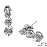 1.8 TCW 3 Round Stone Cubic Zirconia CZ Earrings