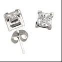 An attractive high polished stud with AAA high quality princess cut cubic zirconia in a V prong setting.