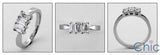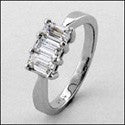 A elegant yet simple three stone ring with high polished solid shank and three diamond quality emerald cut cubic zirconias in share prong setting.