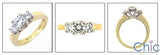 A elegant two tone solid shank ring with a round shaped high quality cubic zirconia center and side stones in prong setting with heart shaped contours.