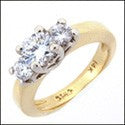 3 Stone 1.2 TCW Round in Heart Shaped Prongs Two Tone Cubic Zirconia Cz Ring