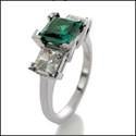 1.5 Emerald Green Princess Diamond Cubic Zirconia 3 Stone Ring 14K White Gold