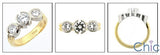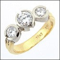 3 Stone CZ Ring 1.5 Round Half Bezels Two Tone 14K Gold
