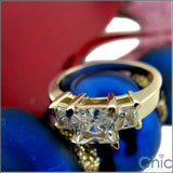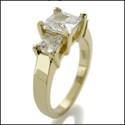 1.75 Carat Princess Cubic Zirconia 3 Stone Ring Prong Set 14K Yellow Gold