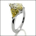 3 Stone 1 Ct Marquise Canary Triangles Cubic Zirconia 14K White Gold Ring
