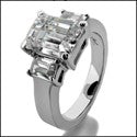 Cubic Zirconia 2 Carat Emerald Cut Baguette 3 Stone Cz Ring 14K White Gold