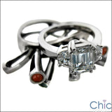 3 Stone 2 Ct Emerald Cut Half Moons Cubic Zirconia 14 K White Gold Ring