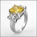3 Stone Canary Yellow 3 Ct Radiant Center Cubic Zirconia Cz Ring