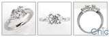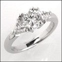 Classic three stone ring with high polished solid shank and round center and triangle cut side high quality cubic zirconias in prong setting.