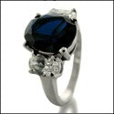 Elegant three-stone ring with a high polished solid shank, a AAA high quality sapphire oval cubic zirconia center stone, with a oval cubic zirconia on each side.