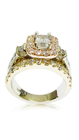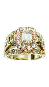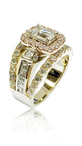 .75 CZ Emerald Cut Halo Style Split Shank Pink Yellow and White Gold 14K Engagement Ring