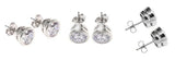 AttraCt ive high polished studs with round AAA high quality white cubic zirconia in bezel setting. Push back.