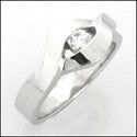 A unique design with solid high polished shank with round shaped high quality white cubic zirconia in channel setting.