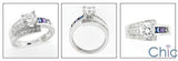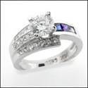 An exquisite chic design ring with a round cubic zirconia in prong setting and round cubic zirconias in pave settings as well as rose, amethyst and blue sapphire cubic zirconias in channel setting on the side.