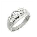 A stylish modern ring with a high polished solid shank and three round shaped high quality cubic zirconias in half bezel setting.